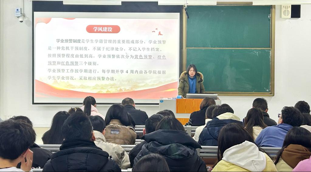 会上,张春侠老师带领同学们一起学习了《永利集团学业预警管理办法(试行)》,并简单介绍学校各类奖学金设置情况。孙崇迎老师就量化考核对同学们提出了养成教育的重要性。谢金萍老师鼓励同学们要明确学习目标,调整学习心态;制定合理计划,掌握科学方法,要培养适应新专业的学习习惯和方法;努力营造积极向上的学习氛围,同时,她嘱咐同学们转专业过程中要自律和坚持,以良好的学风为引领,不断追求卓越。
