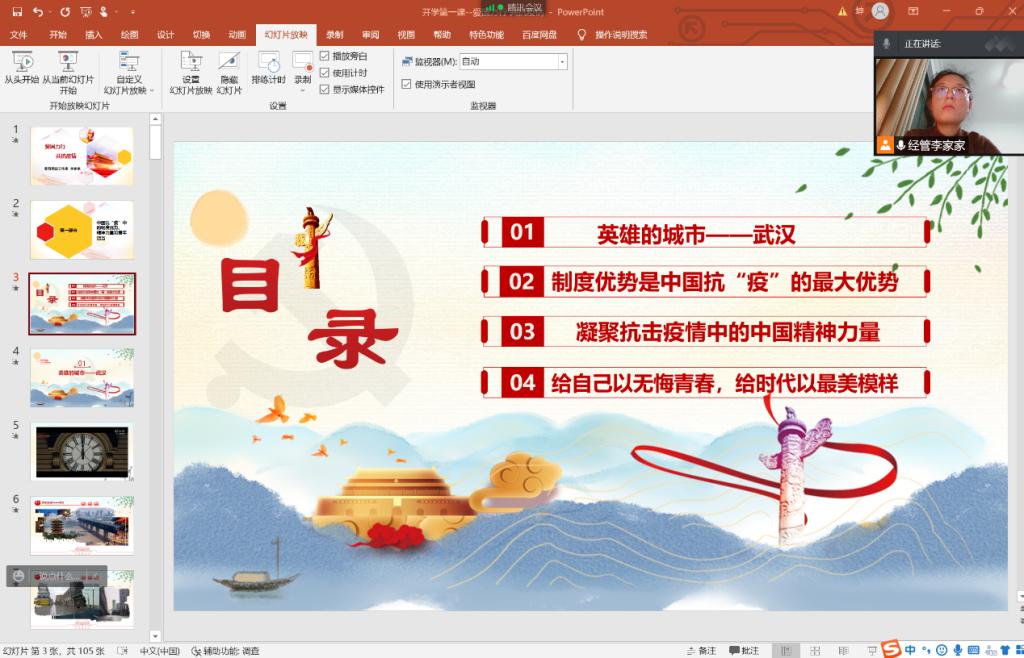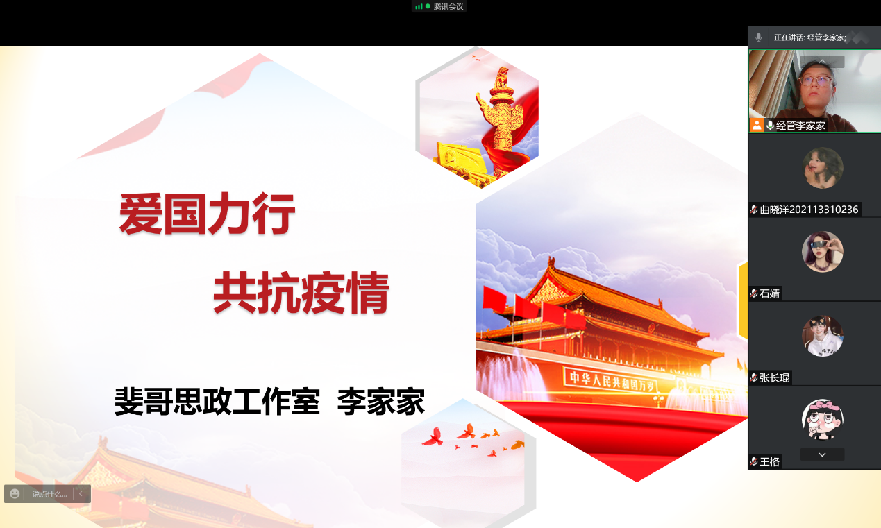 为弘扬抗疫精神,凝聚奋进力量,10月22日,yl9193永利集团以腾讯会议直播的形式召开“爱国力行,共抗疫情”主题教育讲座,讲座由我院辅导员、斐哥思政工作室成员李家家主持,部分毕业生参加。