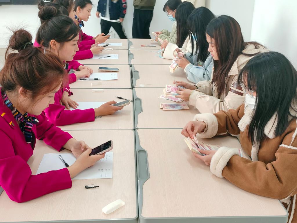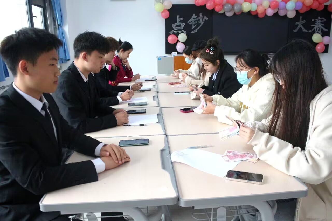 本次比赛以“感受点钞魅力,体验实践激荡”为主题,比赛形式分为个人赛和团队赛。个人赛中他们手法娴熟,全神贯注,动作规范迅速,发挥出了超强的记忆力和点钞能力。团体赛注重团体成员之间的配合和协作能力,在热火朝天的比赛氛围之下选手依旧冷静发挥,讲究配合,同心协力,在紧张且有序的比赛氛围中,赛出风格、赛出水平,展现出了独特的魅力与技能优势。选手点钞结束后,用时少且数量正确者获胜。参赛选手们手法娴熟,动作规范迅速,展现了我院学生扎实的基本功和良好的专业素质。