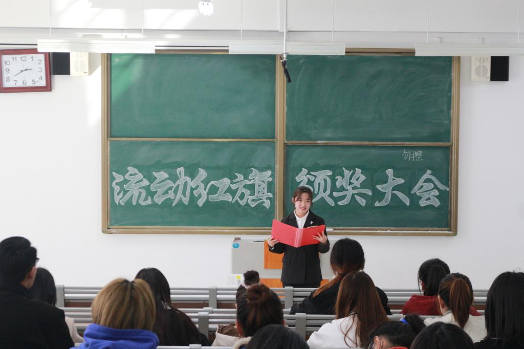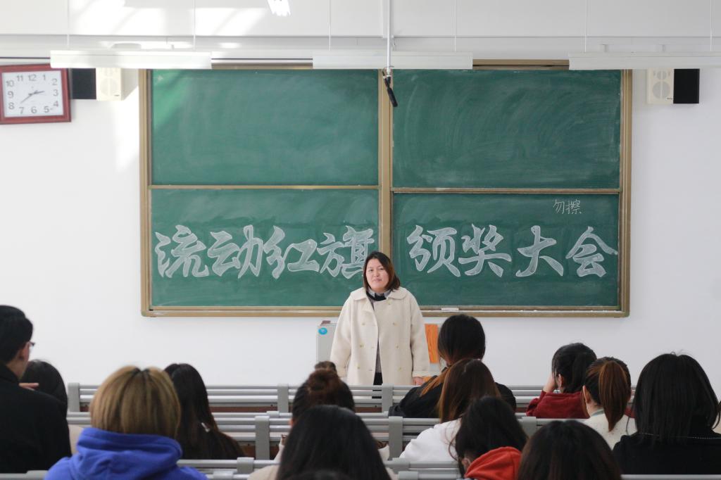 首先,邱秀梅讲话,她对同学们保持整洁宿舍环境、遵守宿舍行为规范的行为进行了表扬,同时对学生会宿管部认真检查、严格监督表达了肯定。她倡导,宿舍是小家,学院是大家,同学们要用心营造美好温馨的生活氛围,构建整洁、舒适的宿舍生态环境。随后主持人宣布了流动红旗的获奖宿舍,我院共70个宿舍获奖,获奖宿舍代表分成五个批次上台领奖。