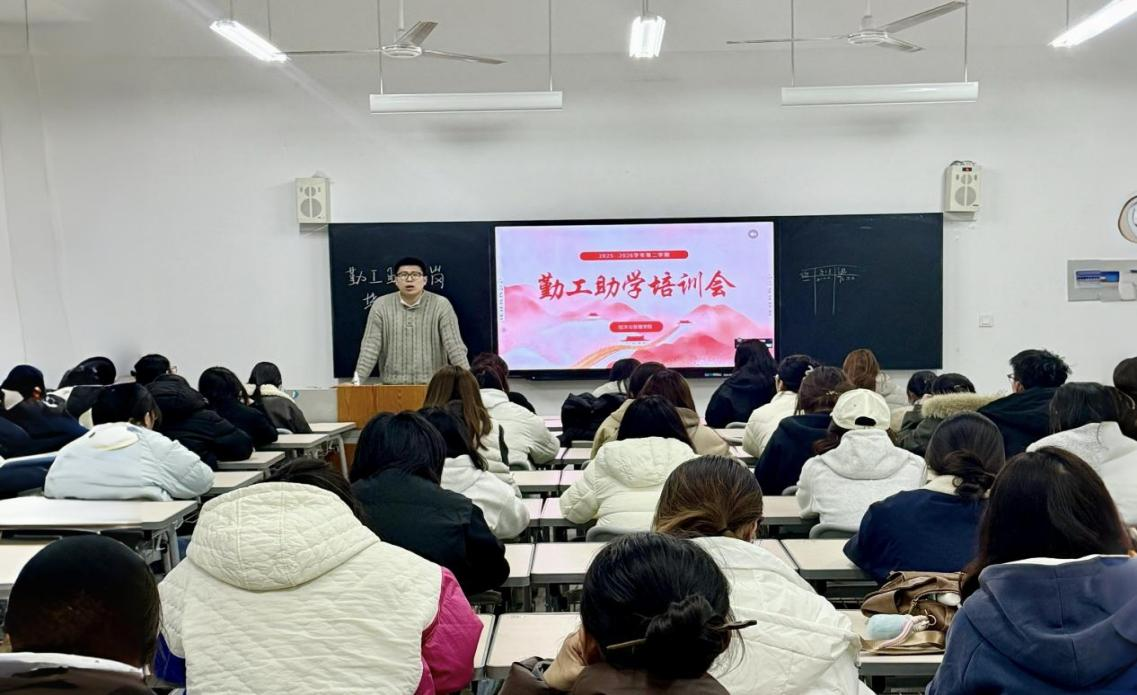 为进一步提升勤工助学工作的规范化水平,提升学生岗位适应能力,3月12日,yl9193永利集团在豁然楼A317教室举办2026年勤工助学新上岗人员培训会。本次培训由学院辅导员杨健老师担任主讲,资助管理部全体成员及勤工助学新上岗学生共同参加。