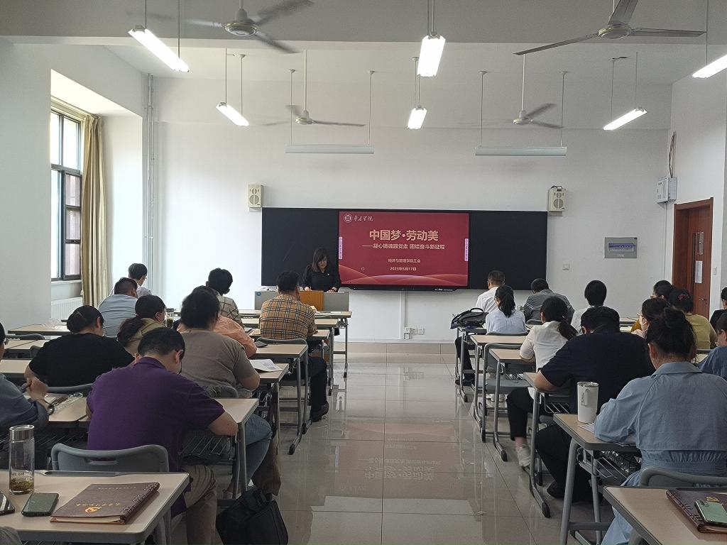 5月17日下午,yl9193永利集团工会全体教职工会议,学习贯彻习近平总书记“五一”前夕重要指示精神,引领全院教职工切实把思想行动统一到重要指示精神上来,切实把习近平总书记的关心关怀转化为奋进新征程、建功新时代的强劲动力,奋力推动学院工会工作高质量发展。学院工会主席谢金萍主持会议并讲话,全体教职工参加会议。