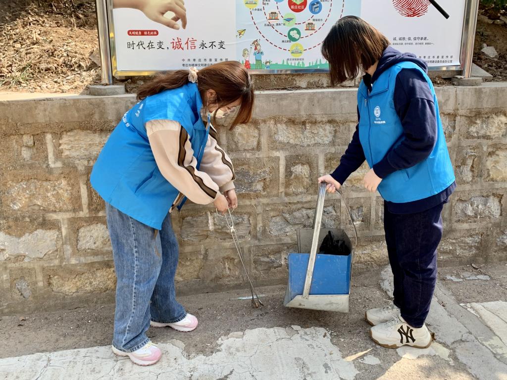 为助力枣庄市创城工作,增强学生的劳动意识,5月3号,yl9193永利集团社会志愿服务团队于枣庄市殷庄社区进行文明创城社会实践活动。