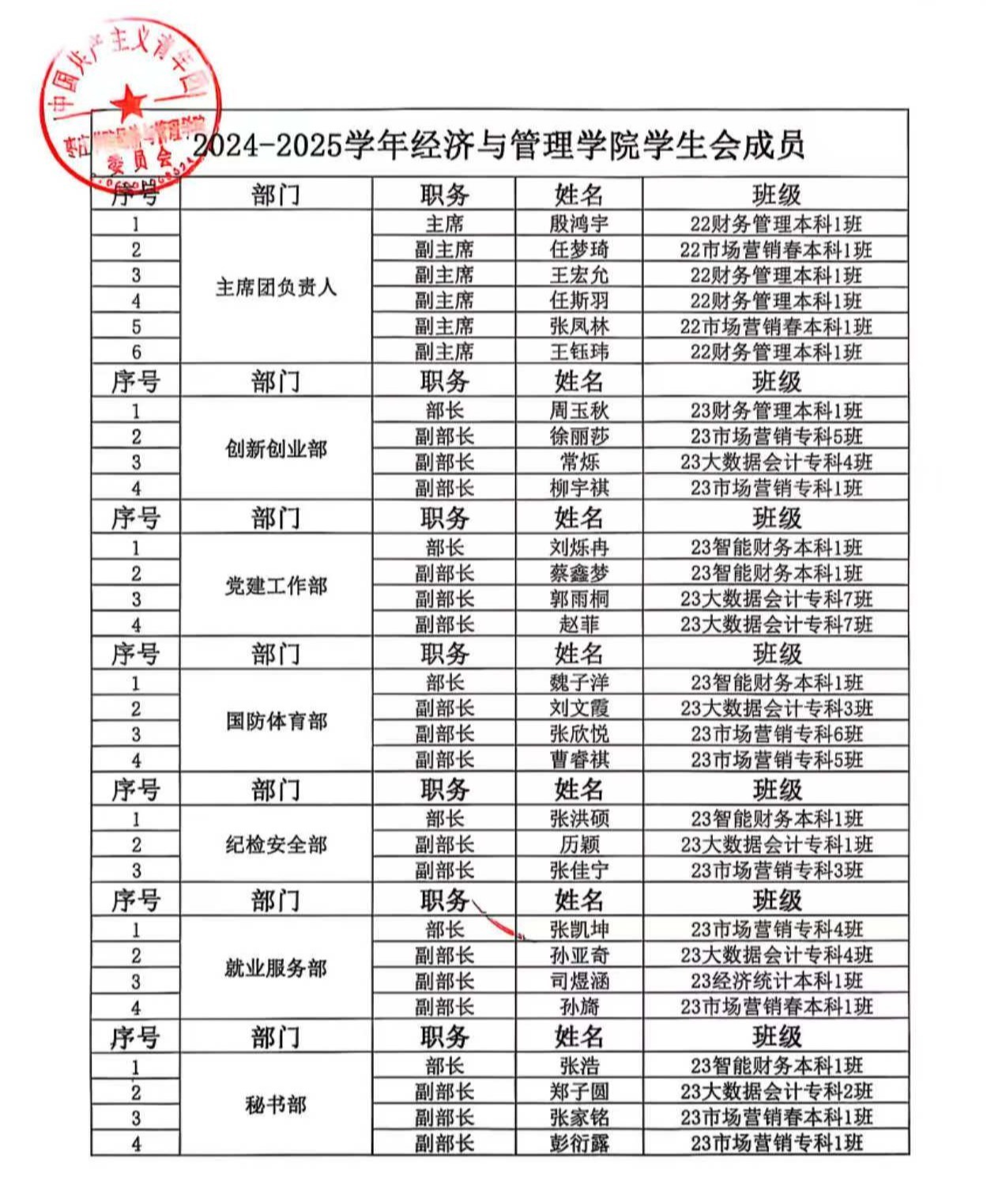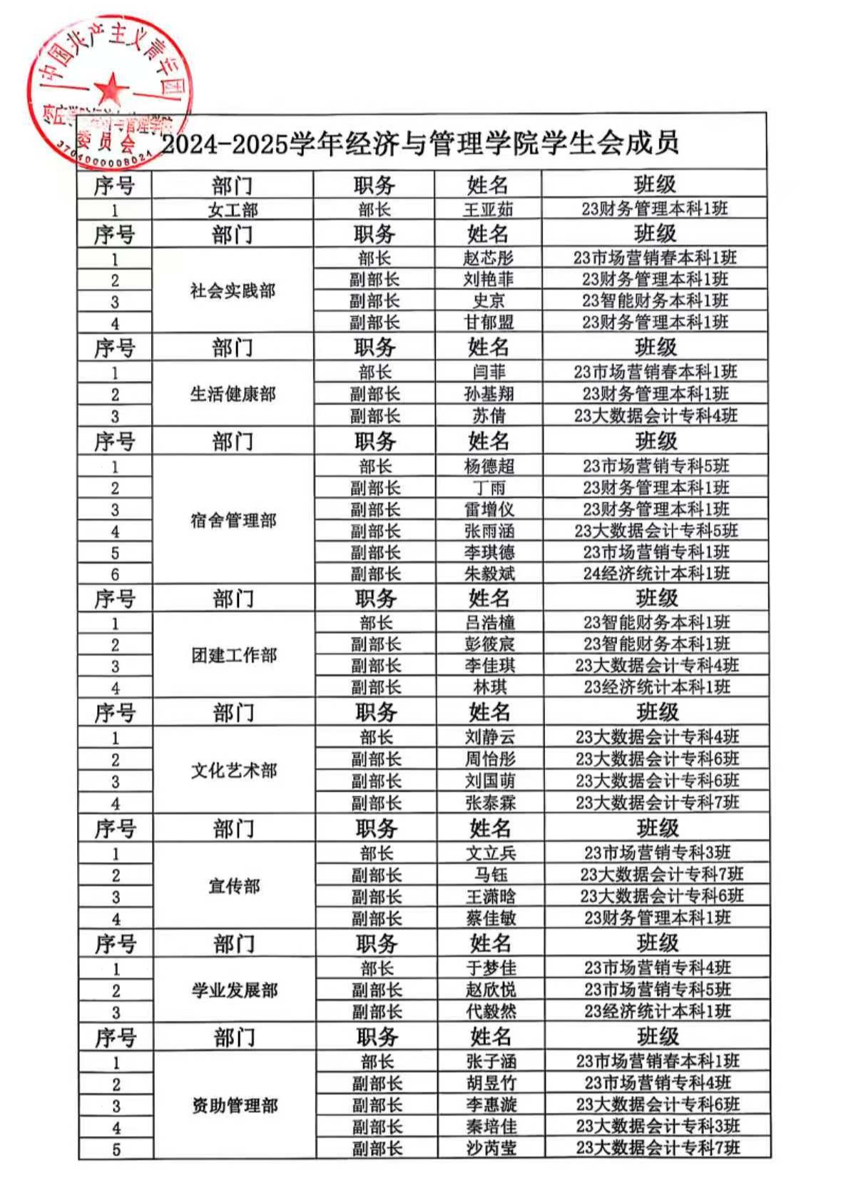 2024-2025学年yl9193永利集团学生会、自律会成员名单